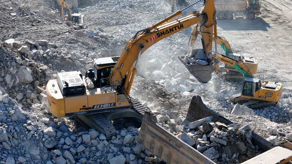 矿区石料硬度高、作业强度大,设备需长时间连续运转。山推SE390LC等机型凭借强劲动力系统与坚固工作装置,在挖掘、装车、破碎等高负荷工序中表现稳定,累计作业超3000小时仍保持高出勤率。现场负责人评价:“山推设备动力足、油耗低,冬季启动快,操作响应灵敏,综合经济性与可靠性非常突出。”现场操作人员补充道:“设备动作精准,六、七个油门就能完成装车作业,效率很高。”
