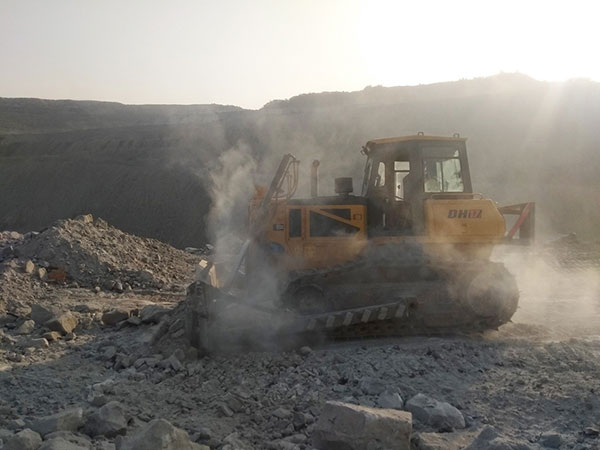 山推DH17推土机在印度某大型露天国有煤矿施工,该矿多岩石及土夹石工况,主要用于露天采煤工作平台回填,以及爆破后采煤作业平台碎石平整清理和短距离推运等工作。工作强度大,三班倒每天工作15小时以上,环境温度高,工地温度高达50℃,持续约3个月。