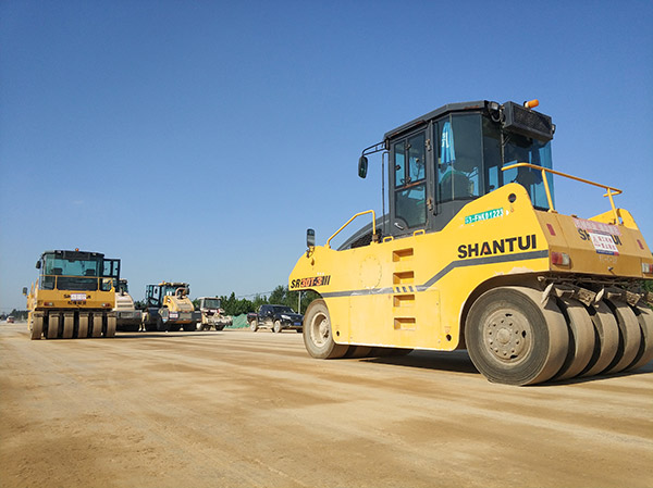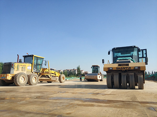 施工方成套使用山推系列设备,推土机、压路机、平地机等进行平整压实作业,山推设备以动力足、质量好、效率高、故障率低赢得该工地称赞,赞誉设备的压实性能和高出勤。
