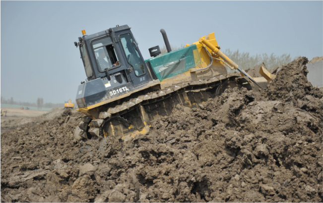 十几辆山推SD16TL推土机在运河河道内作业,“马力大、省油、驾驶室还舒服”,推土机驾驶员毫不掩饰的夸赞这些推土机。SD16TL推土机超宽的三角型履带避免了机器在软土、湿地、沼泽地带等松软物料作业场所作业时的下陷,在河道拓宽、清淤等水利工程施工中具备无可比拟的作业能力。