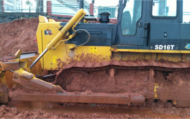客户新购买的SD16T机械推土机正在进行泥土铲运作业,在现场恶劣的工况下,出色的展现了机械推土机强劲高效、省油可靠的优良性能,设备得到了客户的好评。山推SD16T推土机采用成熟的机械传动,传动效率高,使用可靠,结构合理;适用于公路、铁路、矿山、机场、农田等地面的推运、开挖、回填土石方以及其它散料的作业。