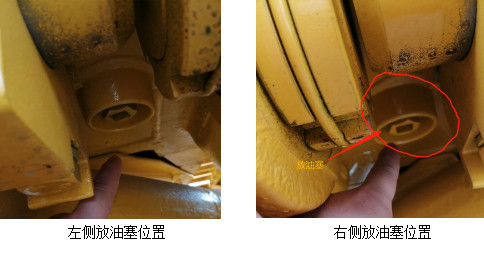 2. 放油:将左右两个丝堵拆掉,用备用桶将油收集好,合理处置。(放油时,一定要注意力度,防止油液溅洒到身上)