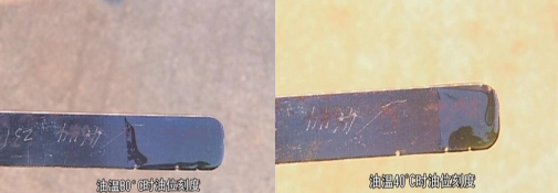 80 ℃时油位应在上刻度“HOT”及中间刻度之间。